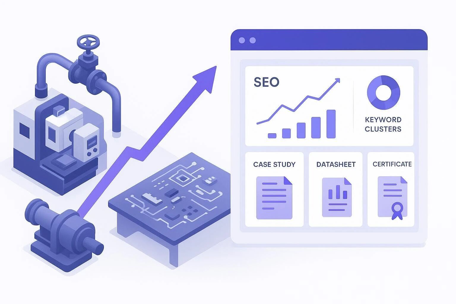 认知阶段写术语解释、常见失效模式、材料替代、工艺难点;考虑阶段写能力/规格页、方案对比、质量与检测流程、行业标准的“买家友好”解读;决策阶段写案例研究、FAQ、RFQ/报价流程页、合规与证书下载页、样品与量产条款。把页面和选题映射到关键词簇,避免各写各的。