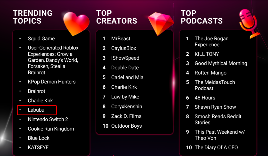 从 Labubu 到全球现象:YouTube 年度热门揭示了怎样的内容趋势?