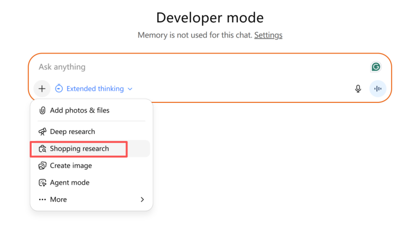 ChatGPT在聊天工具中新增了一个名为“Shopping Research”(购物调研)的功能。