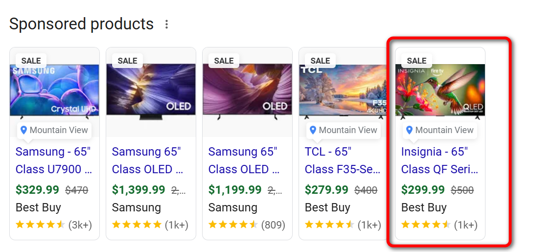 下面就以标准购物广告为例,展示几个通过与竞争对手在表现形式上不同而更容易吸引用户注意的图片案例。