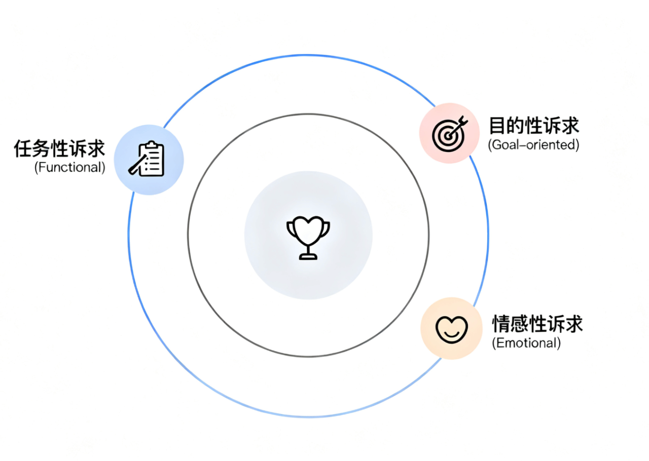 情感性诉求是用户在完成任务和实现目标过程中期望获得的心理体验和情感满足。这是最深层、也是最能建立品牌忠诚度的诉求层次。