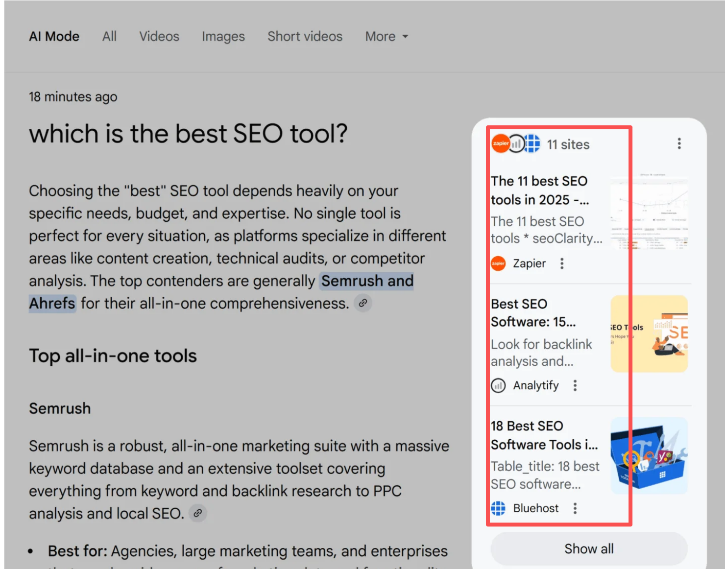 根据SEMRUSH的调研,AI推荐的链接中,像reddit,维基百科占的比例非常高,因为这些来源信任度高。