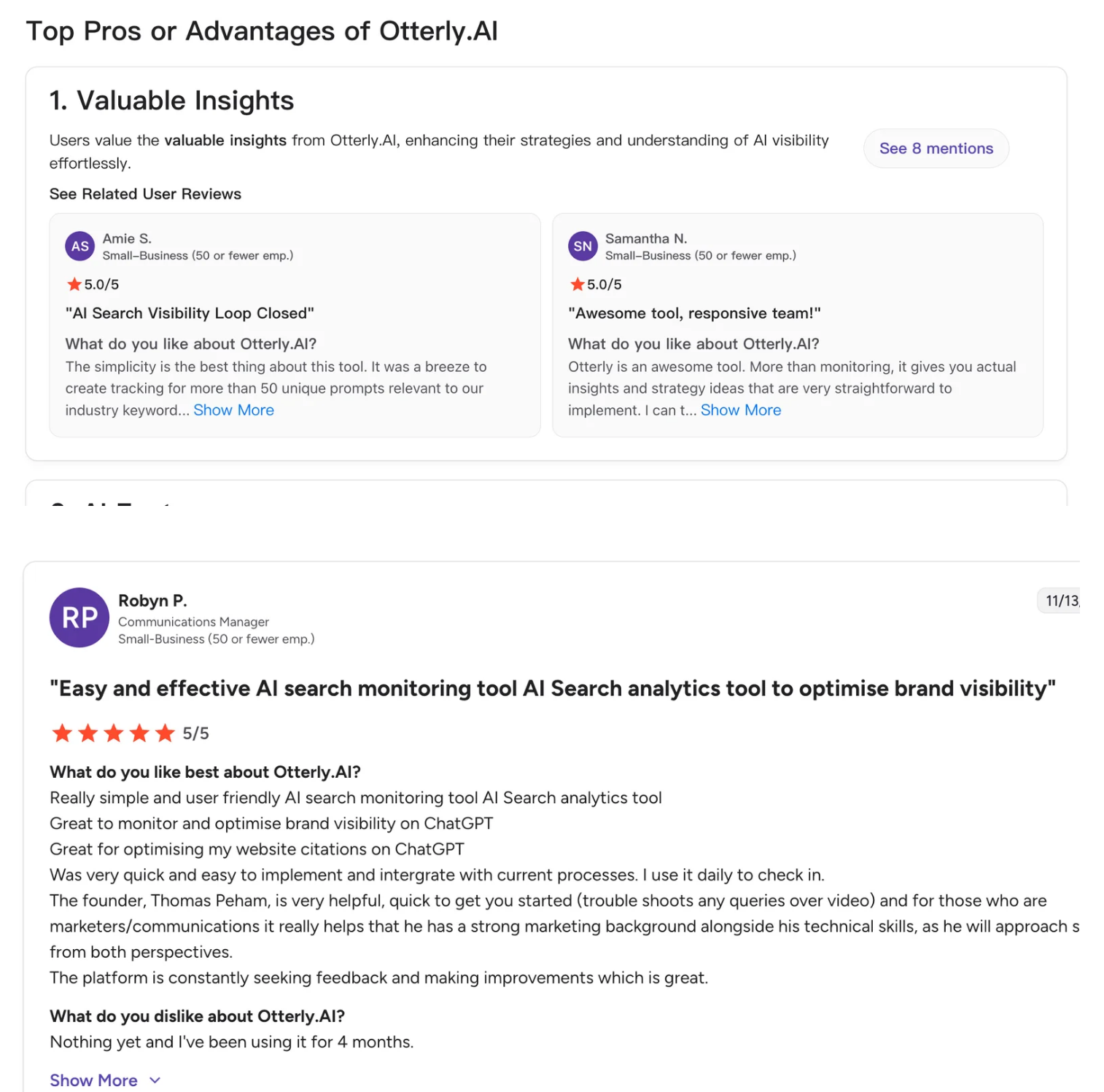 Otterly这款工具就是借助了G2这个平台来增加他们的AI品牌声量-Share Of Voice SOV