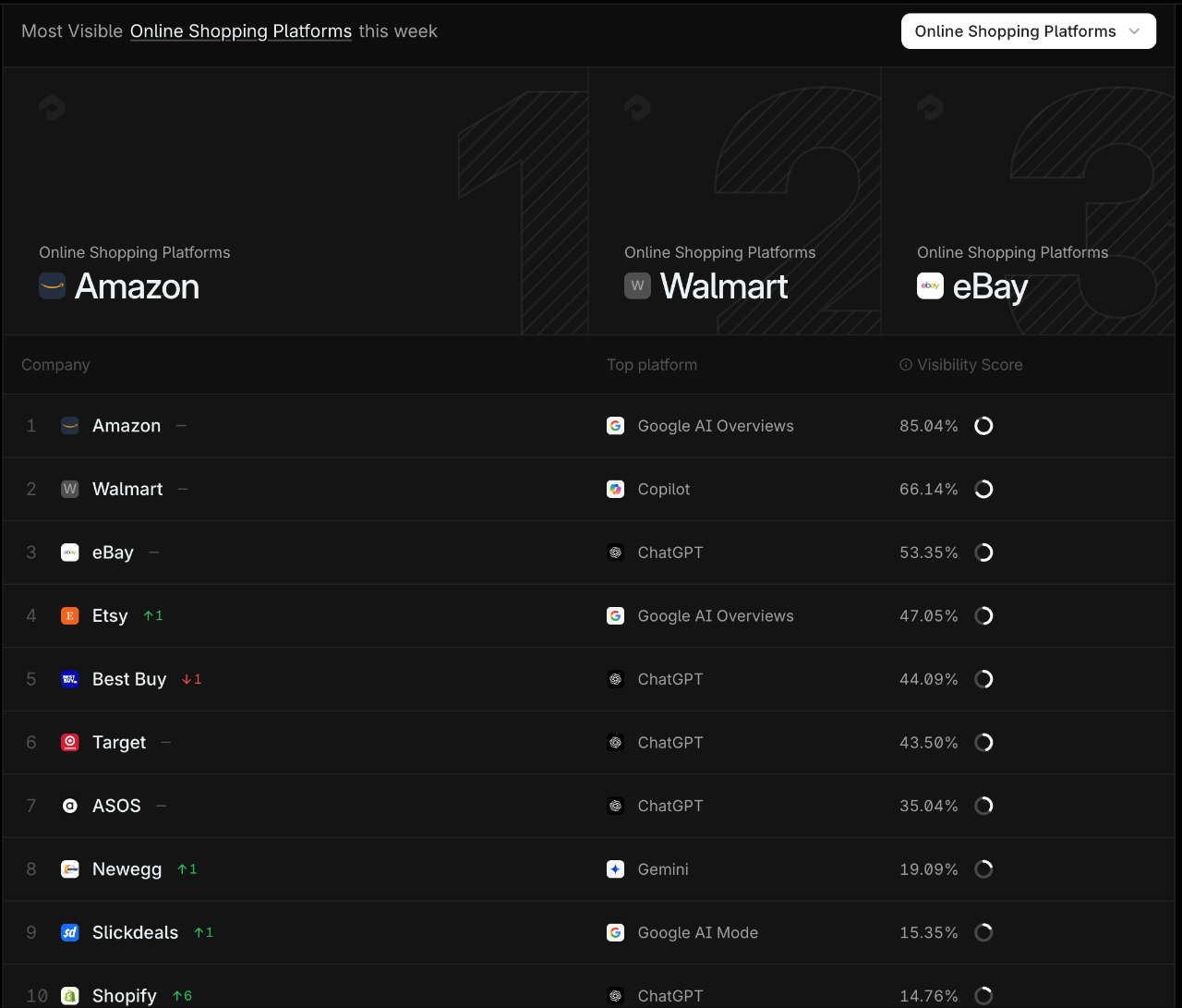 如下图,是电商平台的 AI 曝光度榜单: