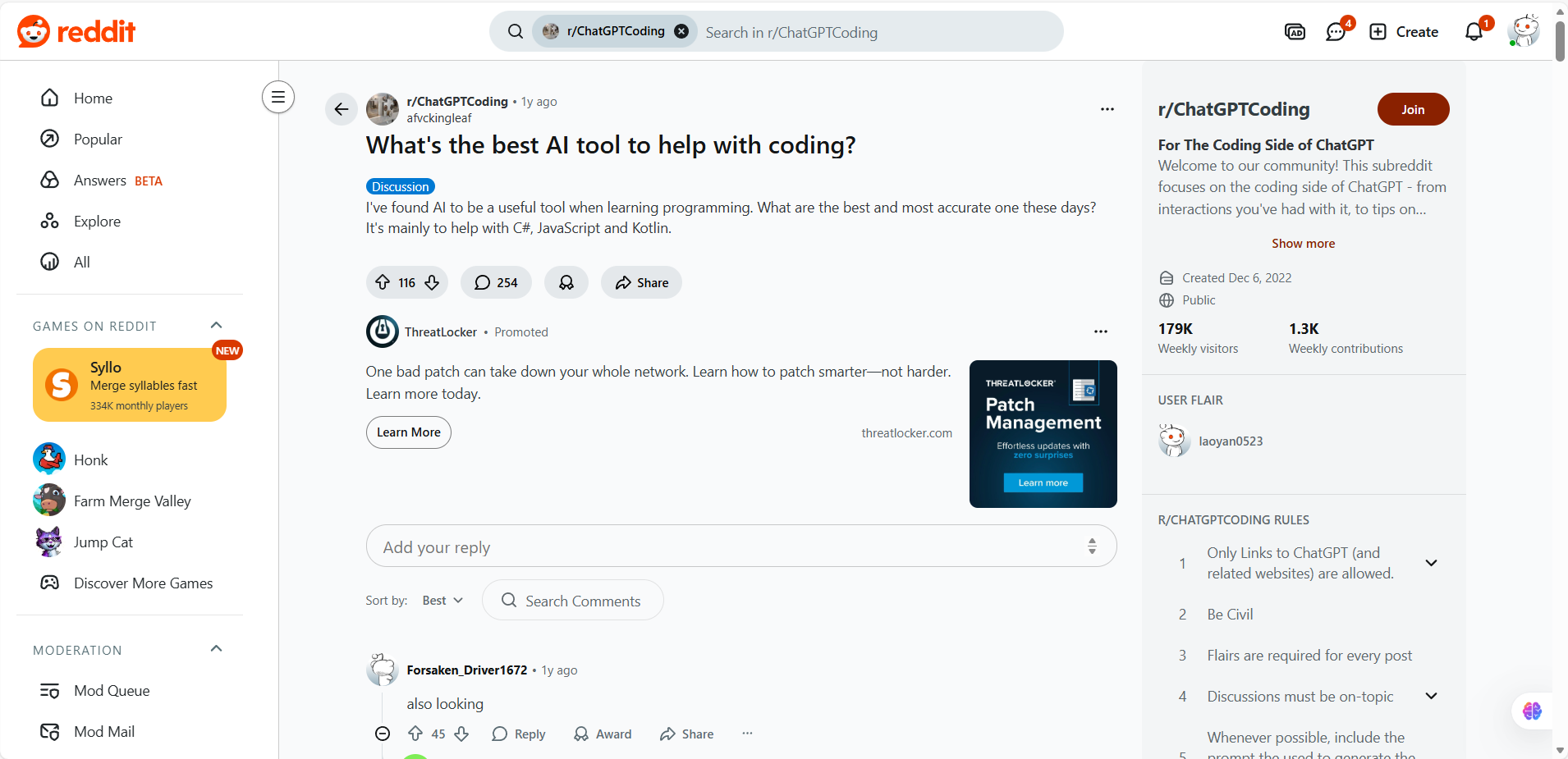 提问的问题是Best AI coding IDE,在谷歌AI Overview中被引用,引用的内容主要来自于这个热帖: