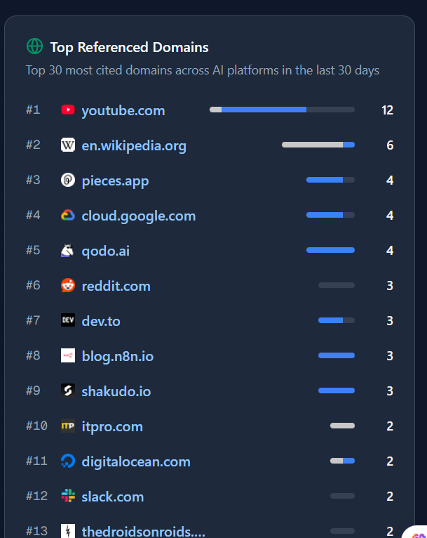 我们结合几个不同领域的不同品牌的数据来看看Reddit在引用的域名中的表现: