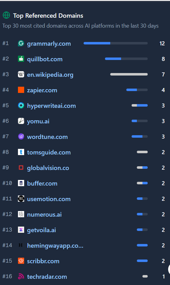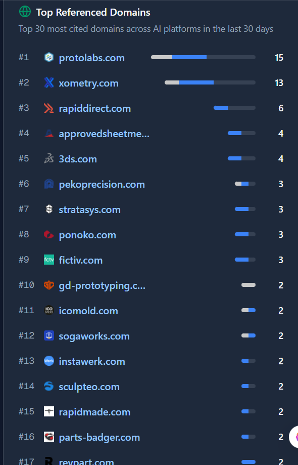 由此可见,对于B2B制造类型的企业,因为产品更成熟和传统,所以AI更信任官网和维基百科等。Reddit论坛的评价对于AI引用并没有太大的帮助。