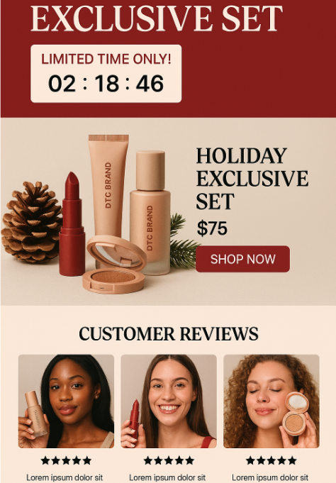 页面底部设置清晰醒目的限时折扣CTA,并配有倒计时模块,强化行动动机。