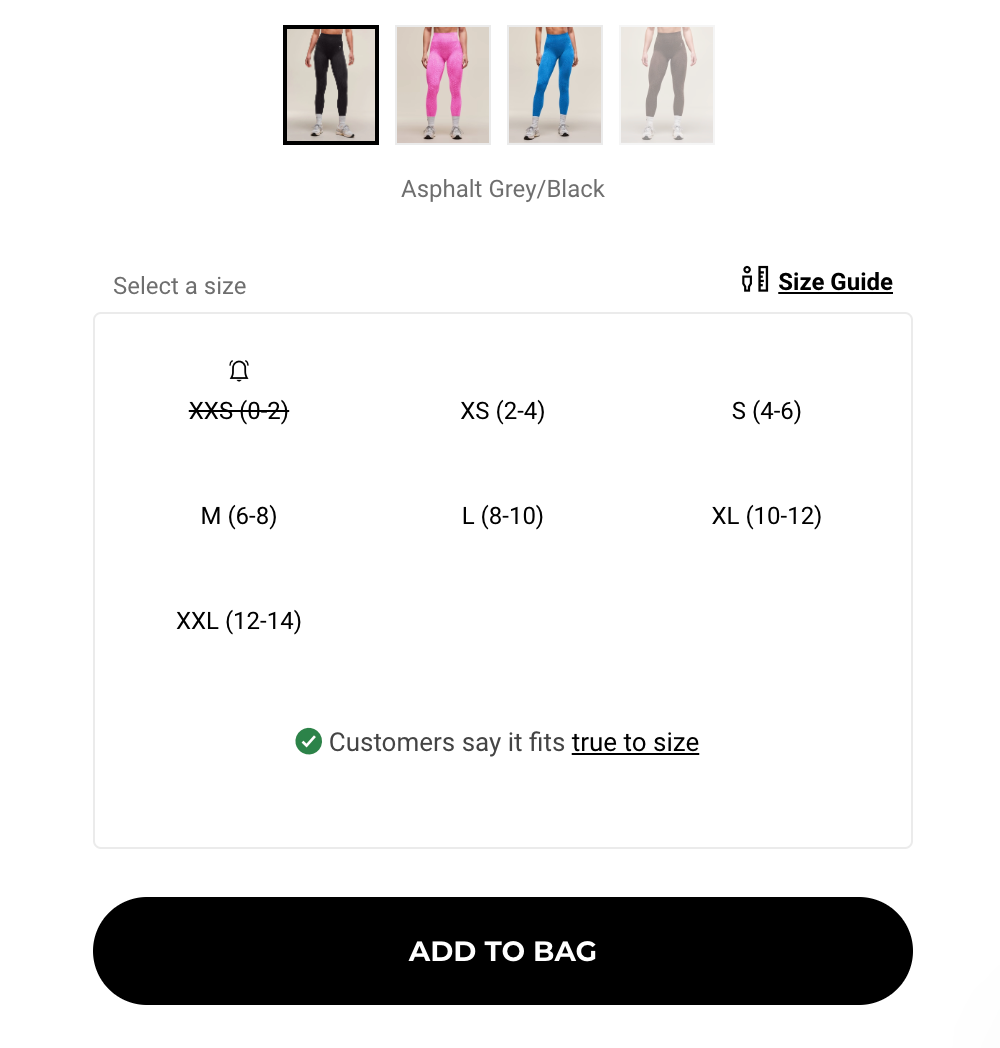 按钮文案:「加入购物袋」(比「购物车」更显年轻化)