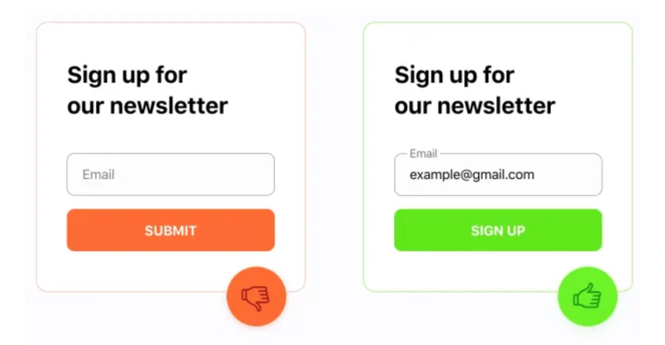 行动按钮要直接(例:「获取我的优惠」>「继续」)