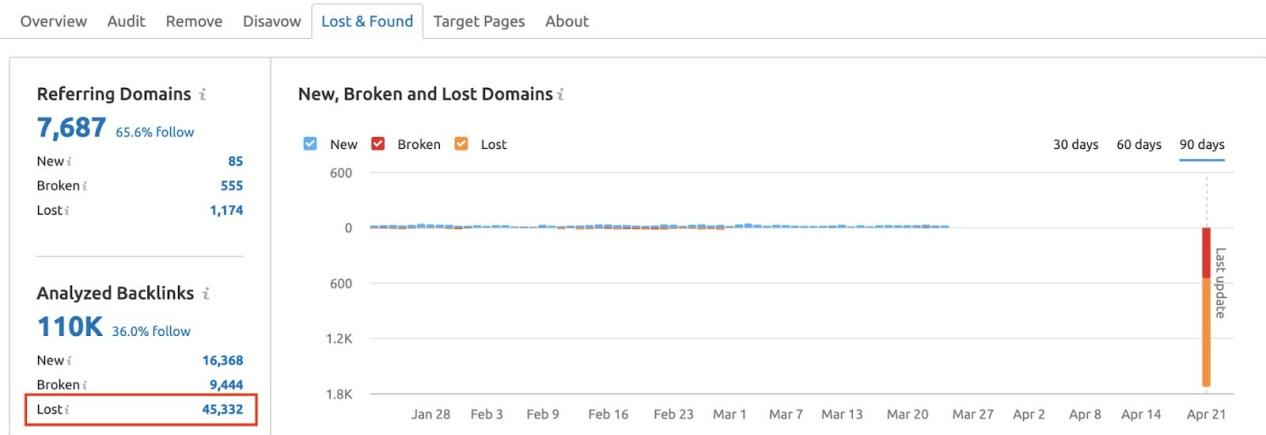 同时也可以在Lost & Found报告中查看你最近丢失的外链。