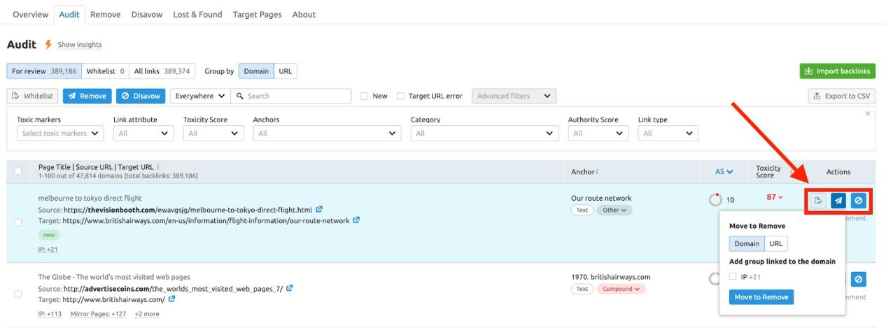 查看Audit报告,查看哪些外链是有害的。如果有确凿证据证明这些链接影响了你的SEO,你可以考虑考虑删除或拒绝这些链接。