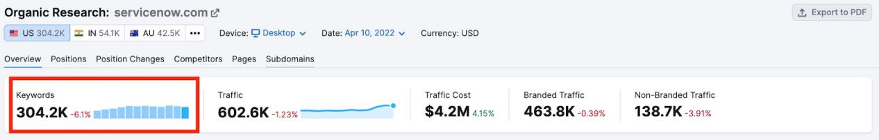 查看Organic Keyword Trend,了解谷歌排名算法在哪些方面进行了更新,以及你的自然搜索关键词数量在哪些方面发生了变化。