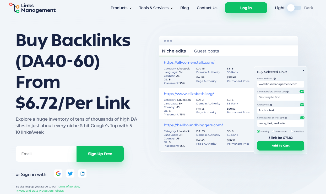 特点:专注于博主外链,提供经过验证的博主链接资源,高度透明的购买流程,适合内容驱动的SEO策略,价格较高,不适合小型项目,服务范围也有限,仅限于博客文章外链。