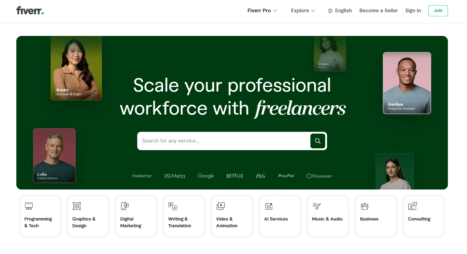 特点:全球最大的自由职业者平台之一,价格较高,质量也比较好,可定制,专业性强,手续费会贵一些,介意高手续费的尽量多任务合在一起,各类型的也都有,龙鱼混杂,需时间甄选,也需要卖家提供样本,样本的质量可信度较高一些。