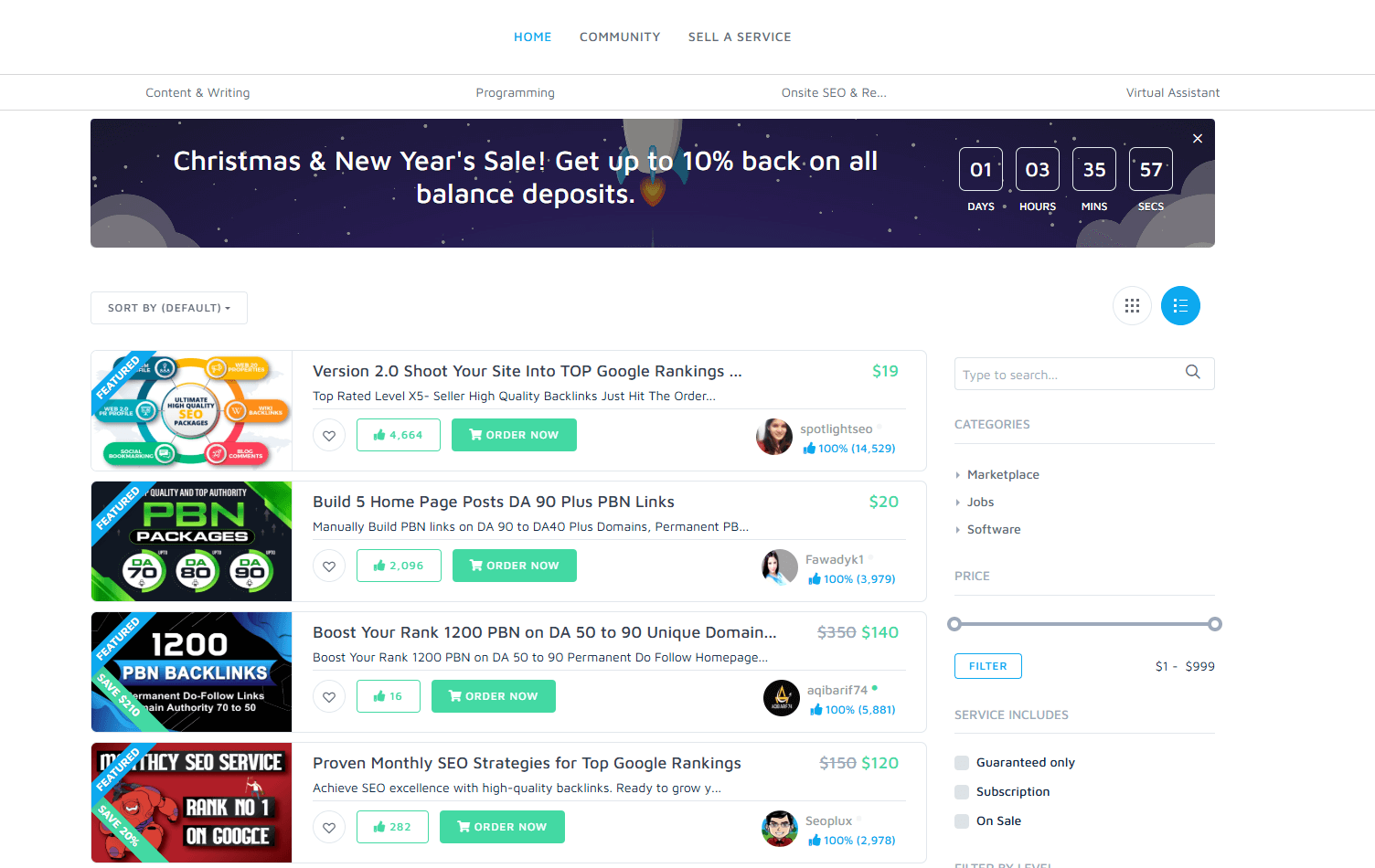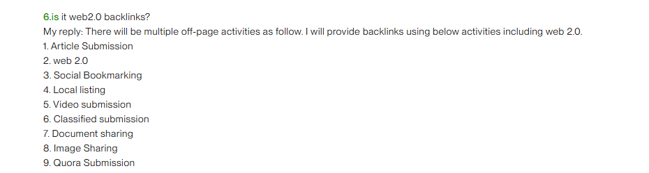 特点:价格比较低廉,很多5美金高DA的外链,各类型的都有,质量比较差,需要自己筛选,很多都是机器自动发的。不透明,需要向卖家要外链样本。