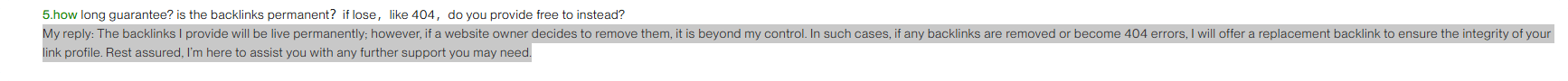 - 9.5 问题五:how long guarantee? and the backlinks are permanent?