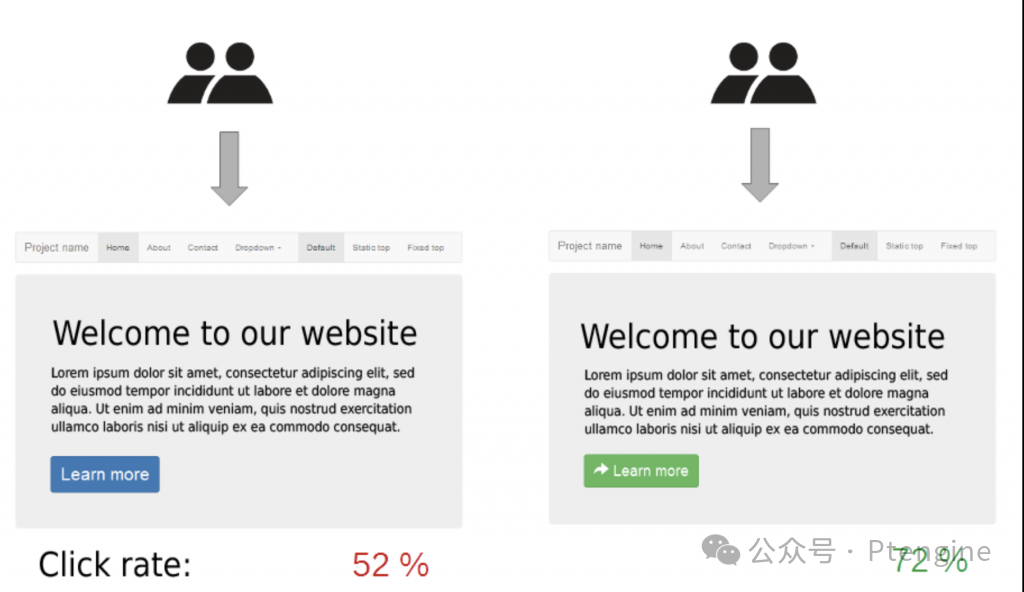 - 流量分配:将流量平均分配到两个版本。Ptengine、Optimizely 或 VWO 等工具可以帮助自动完成此过程。