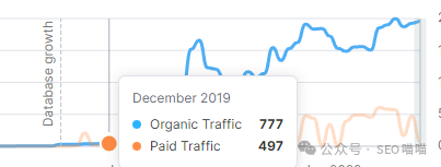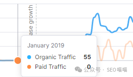 找到我们的对标网站,在semrush上找到他的搜索流量曲线,查看他从创建开始的流量变化。如果我们要制定未来一年的流量目标,那么我们就看对方创建一年之后的流量变化。