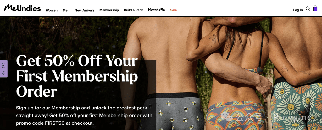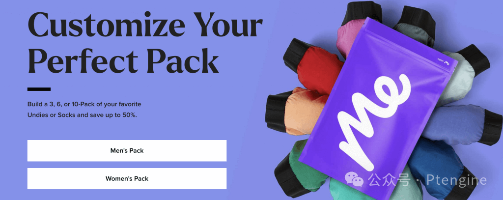 个性化体验:MeUndies 擅长创造个性化的购物体验。他们展示了不同身高、体态的模特,提倡包容性,让访客能够在产品中看到自己。这种个性化的触感增强了用户与品牌和产品的联系。