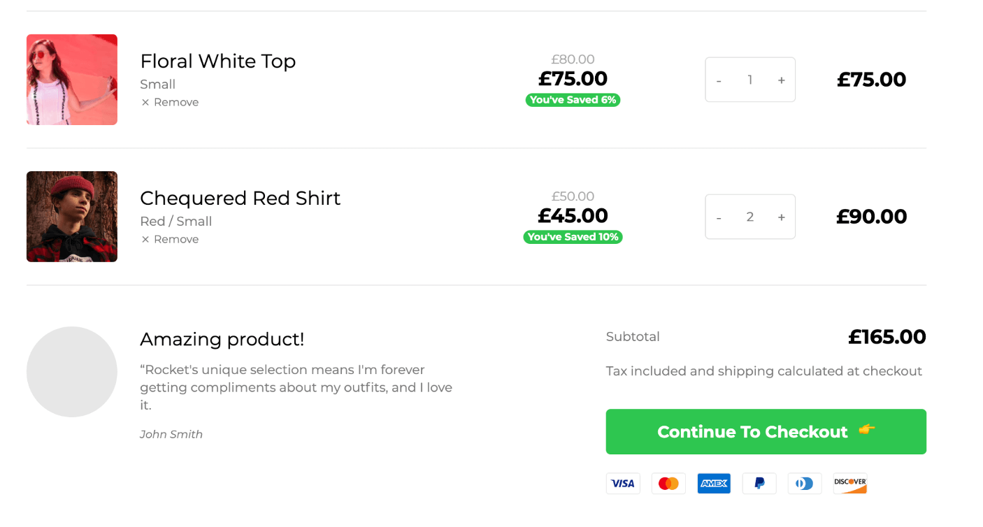 想要人们做出购买选择,最不合时宜的莫过于购物车页脚的杂项链接——它们会分散顾客的注意力。只需在谷歌上搜索 “Remove Shopify cart footer(删除Shopify购物车页脚)”,然后按照指示操作,非常简单。