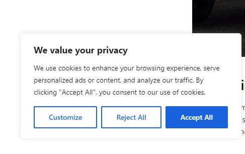 安装完成之后,我们的网站现在就拥有consent mode banner了,可以去前台查看一下是否是显示。进入网站后,我们可以看到在网站的下方已经跳出来了这样的一个弹窗。当然我们也可以对弹窗进行自定义。