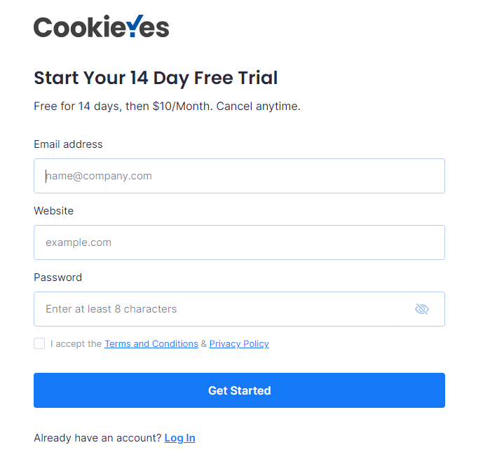 注册Cookie Yes账号