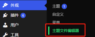 2.进入Wordpress后台,在外观里面找到“主题文件编辑器”然后找到主题页眉(header.php)