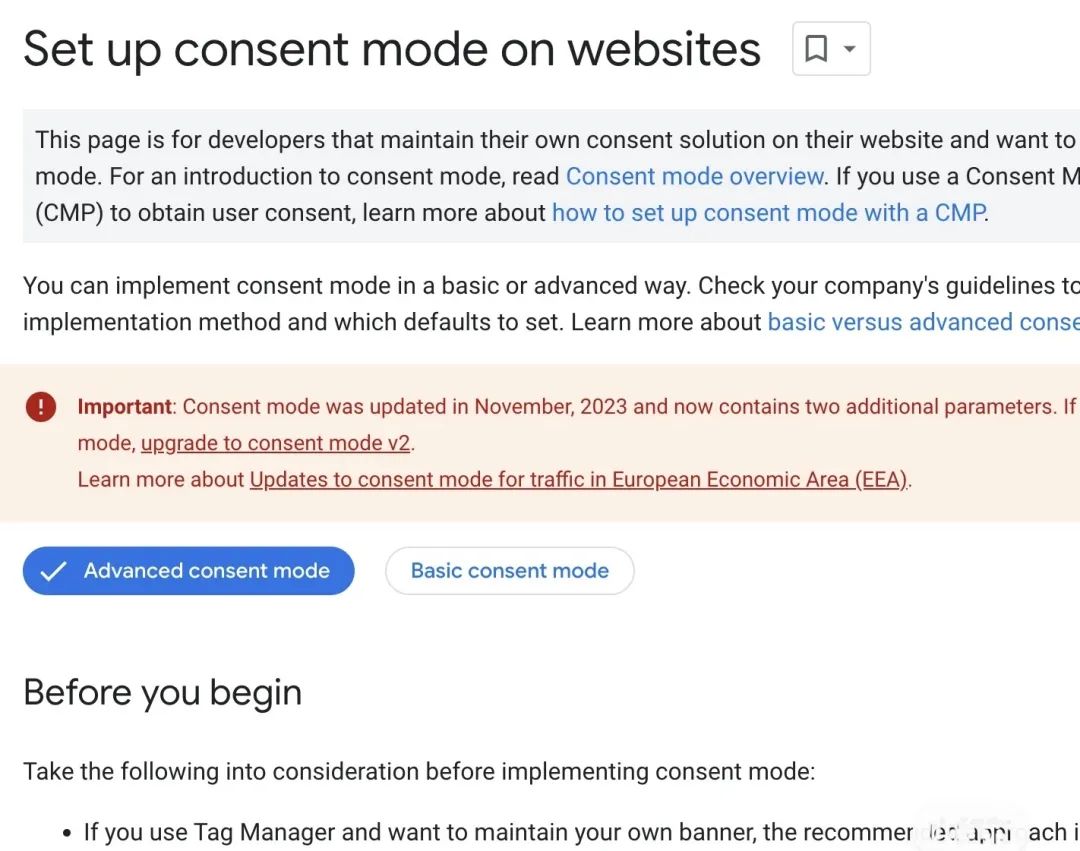 关于consent mode的简介大家可以查看谷歌官方的文档