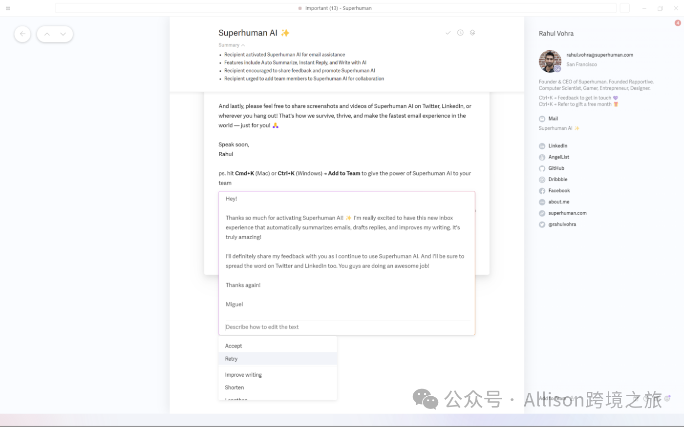 Superhuman:结合 AI 生成与消息模板 -