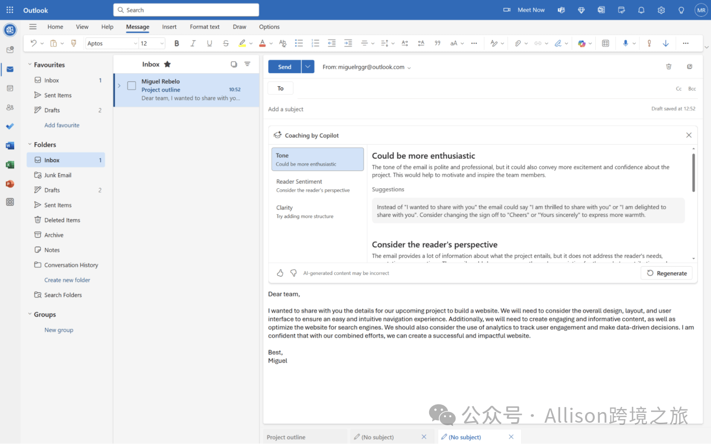 Microsoft Copilot Pro for Outlook:提升沟通效率 -