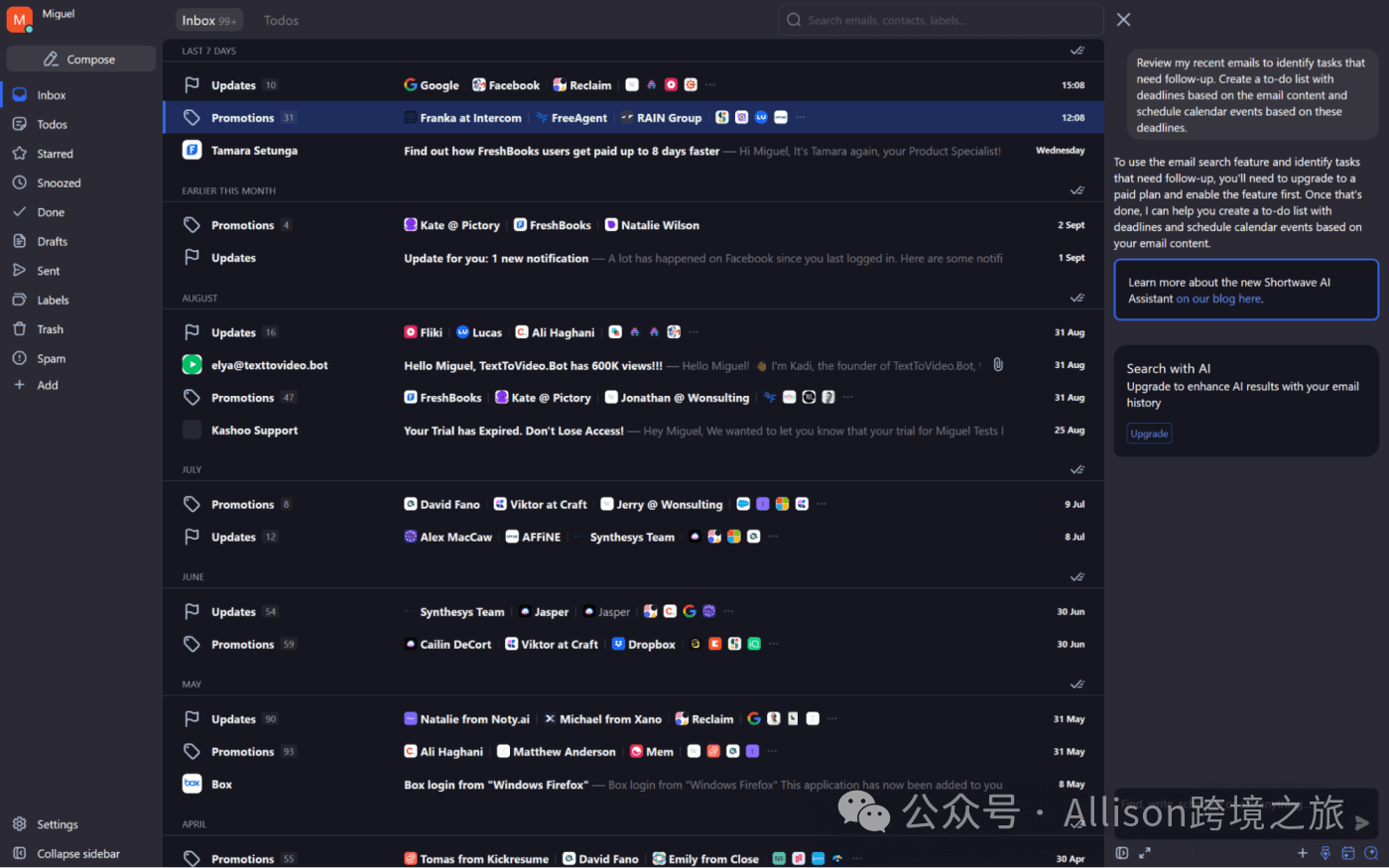 Shortwave 具有最广泛的 AI 功能之一,例如 AI 驱动的邮件搜索、数据提取以及内容生成。它目前仅适用于 Gmail 账户。
