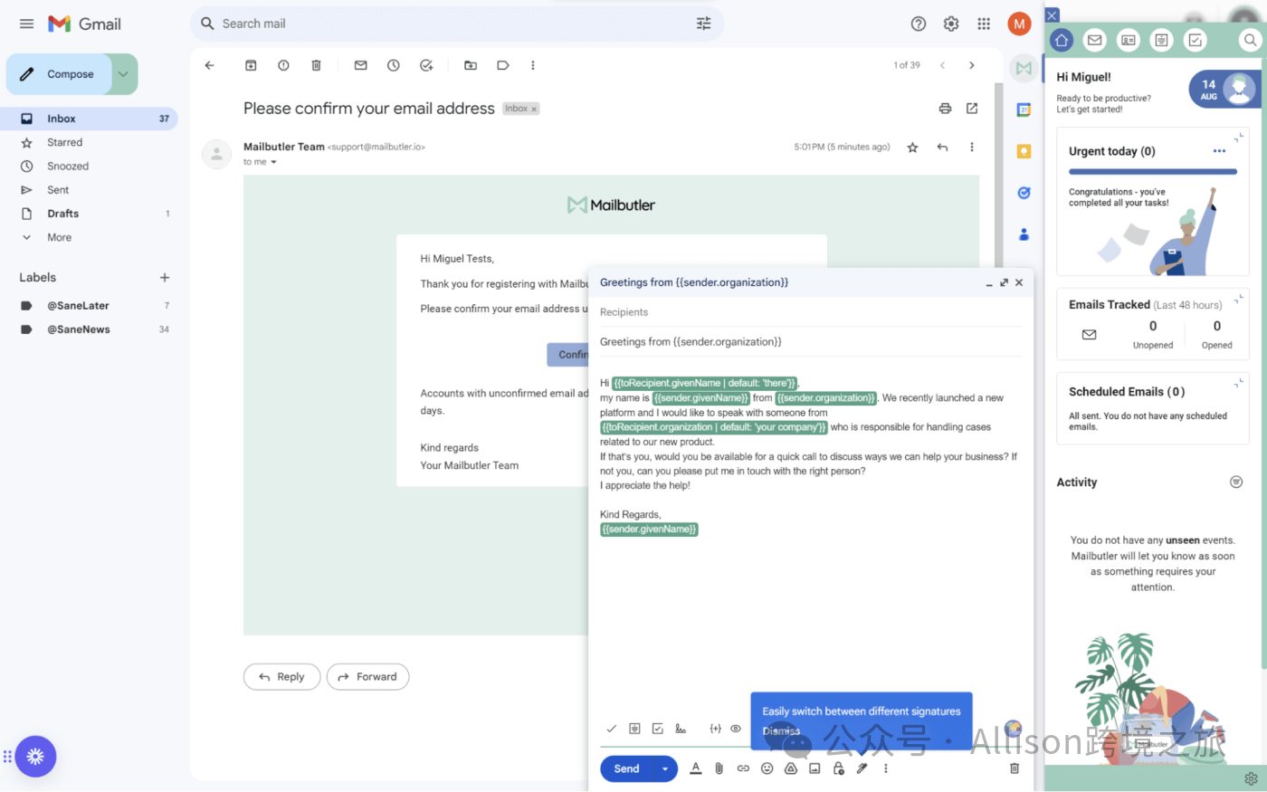 Mailbutler 不仅集成了生成式 AI,还能从邮件提取联系人信息和任务,并与任务管理应用无缝对接。