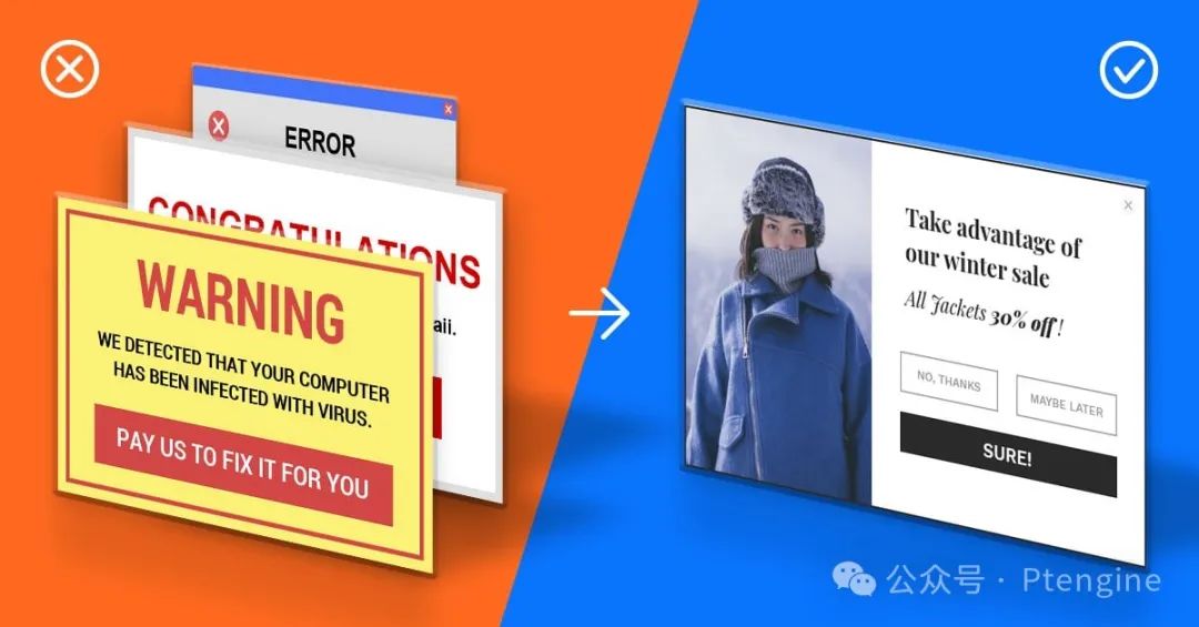 - 当作网站的“亲儿子”:弹窗应该感觉是你网站整体的一部分,而不是一个事后考虑的东西。确保它们与你品牌的外观和感觉相匹配,具有清晰、简洁的信息和CTA。此外,关闭按钮明显也很关键——及时止损,不要再惹用户了。