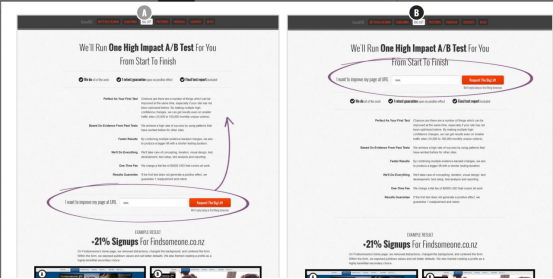 1、首屏CTA放在文本上面,测试结果显示,B比A提升255%的转化率