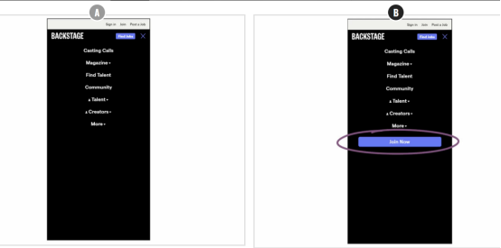 5、以下实验中,在扩展的移动导航菜单中添加了一个简单的“立即加入”按钮。单击该按钮将启动多步骤的会员订阅流程,跟踪了对订阅开始和最终销售的影响。