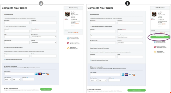 6、此结帐页面的首屏上方增加一个额外的“下订单”按钮,该控件在屏幕底部有一个类似的按钮,通过这一变化来衡量对总销售额的影响。