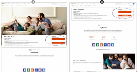 8、Microsoft Store 在 Office 365 主页产品页面上运行了一项实验,通过删除英雄形象来提高购买行动的号召力。