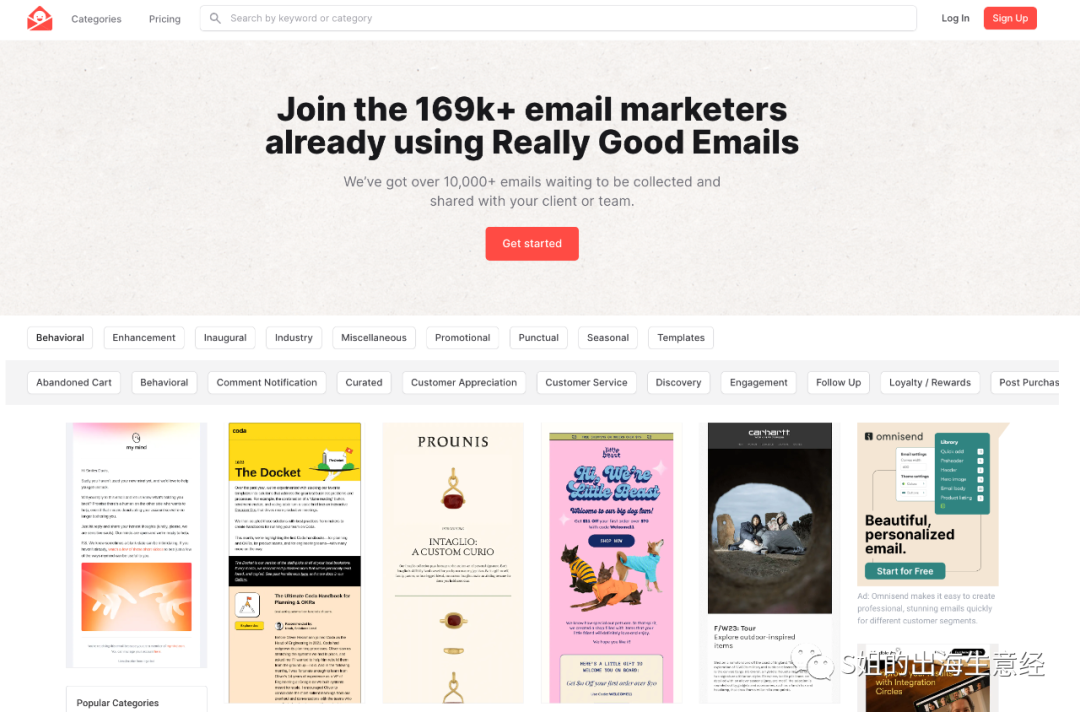 Reallygoodemails.com 更偏重于设计排版, 可以轻松找到各行各业比较优秀的邮件模版进行模仿。