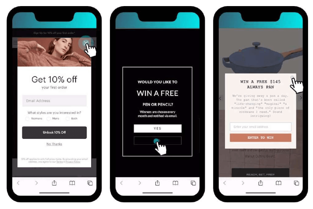 在移动设备上尤其需要注意这一点,错误的弹窗大小(无法退出)可能会让最熟悉科技的消费者都在愤怒中摔掉手机。