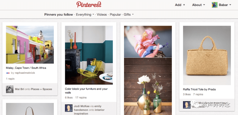 用户可以创建和分享自己的图片集合,就是所谓的”pins”,并关注其他用户或主题以获得灵感。