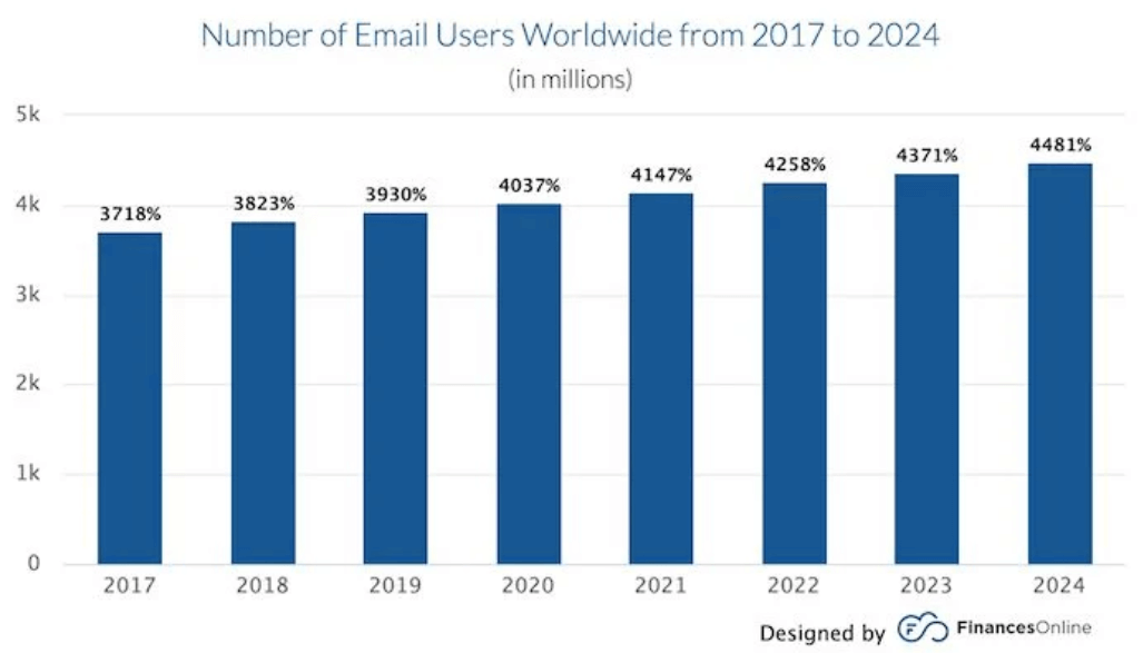 上面这份图表是某权威机构发布的,至少从表中能反映两点。其一是邮件的使用率很高是生活或工作中的必须,其二是邮件用户数在逐年上升。所以这些数据便能从一个侧面反映出,邮件营销其实并不过时,甚至说有成为主流之势。
