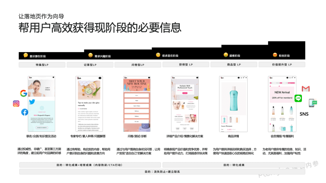 尽管购买转化仍然无比重要,但不是唯一目标。他们的重要任务是将用户消化信息分成不同的心理阶段,并通过各种各样的触点和载体帮用户把决策信息充分补全。