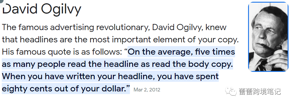 “when you have written your headline you have spent 80 cents out of your dollar ” ——David dodgy