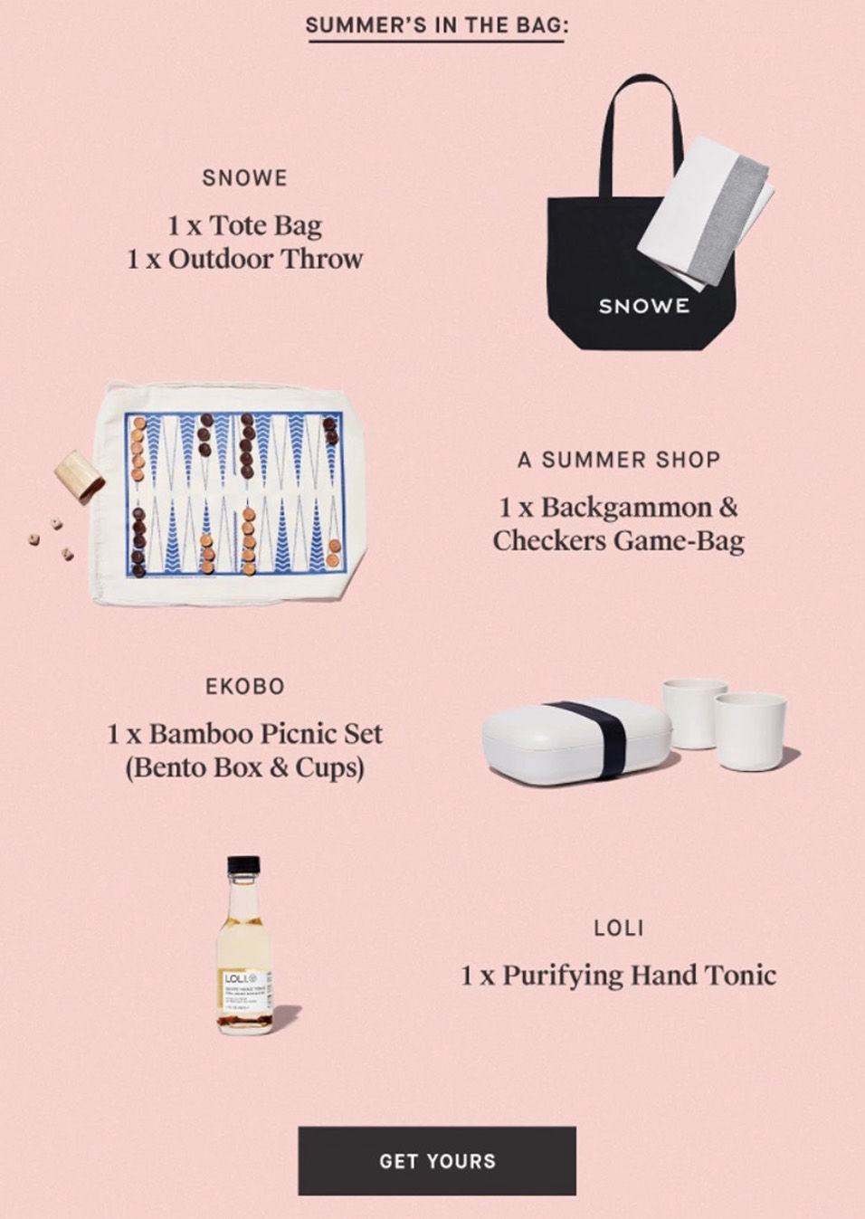 Snowe并不是直接说每个订单都赠送免费的礼品袋,而是通过有趣的描述让大家对邮件内容产生了兴趣。当你点进他们的邮件的时候就会看到他们是如何解释夏天是在袋子里的: