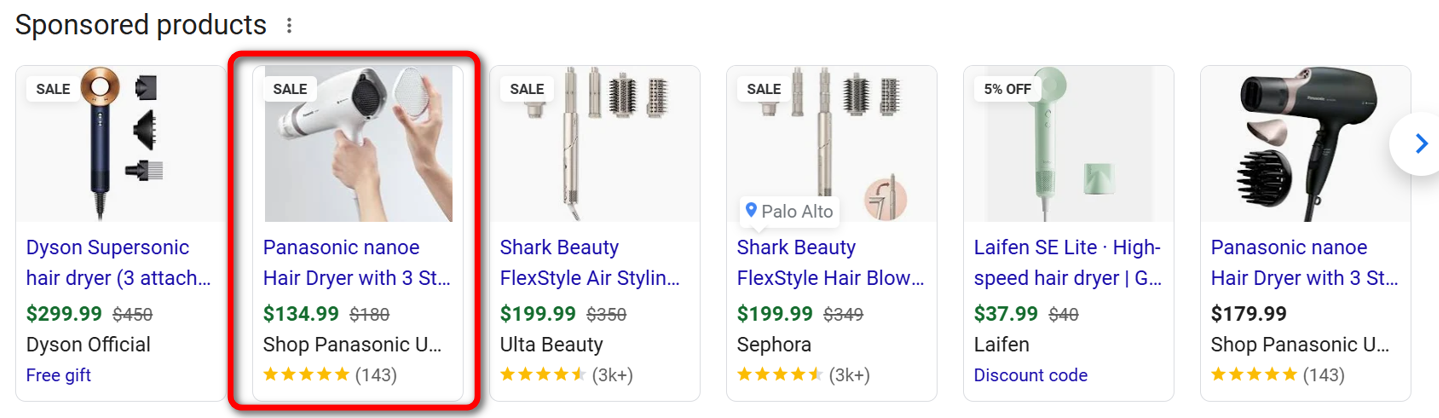 下面就以标准购物广告为例,展示几个通过与竞争对手在表现形式上不同而更容易吸引用户注意的图片案例。