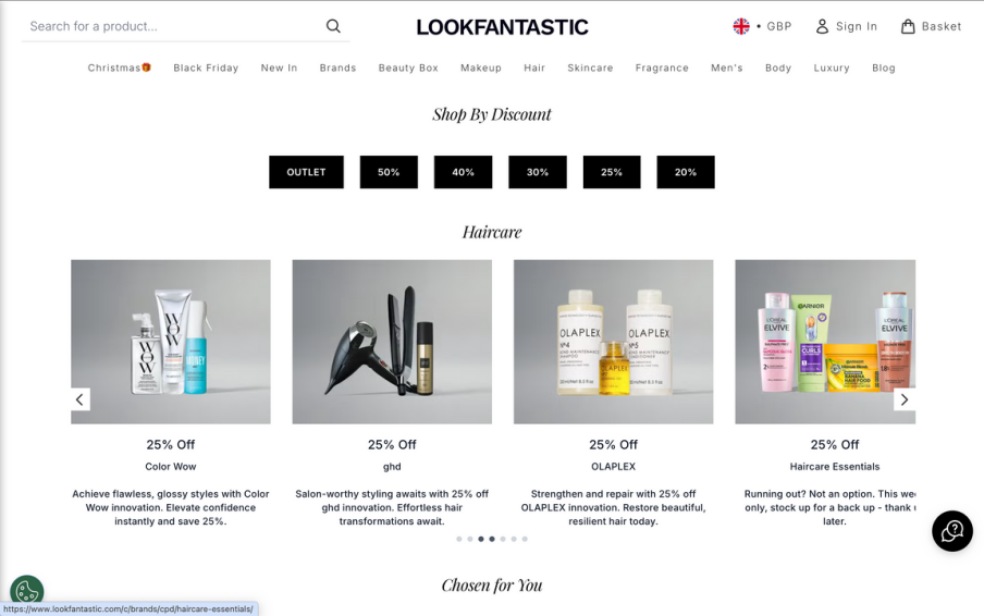 Lookfantastic的黑五促销页
