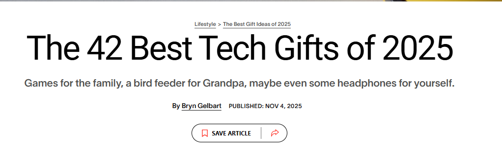 此外,Gift Guide 不只存在于官网。很多 3C 品牌也会通过 PR 合作,把自己的产品放进媒体、博主的节日 Gift Guide 里,比如:
