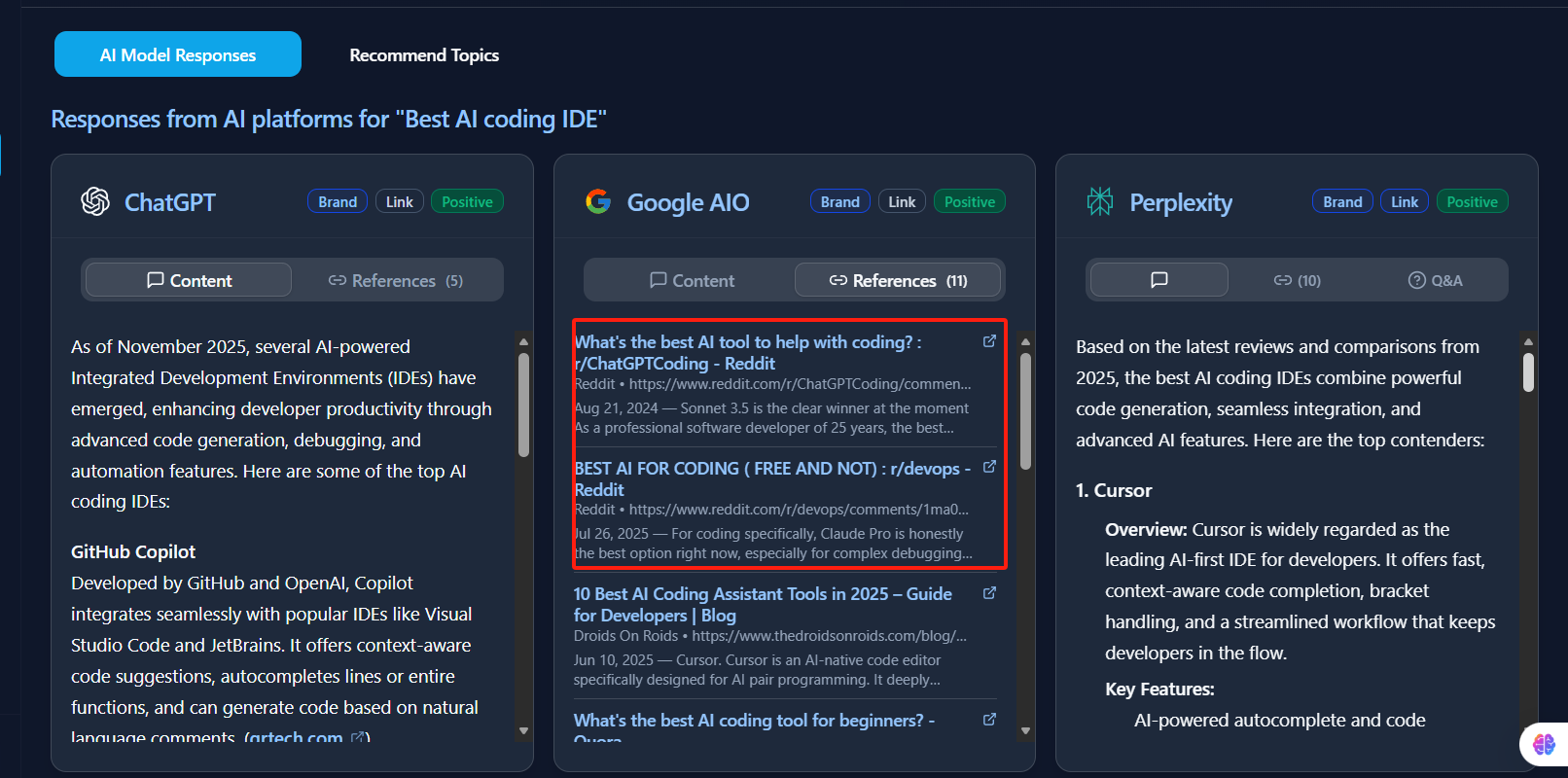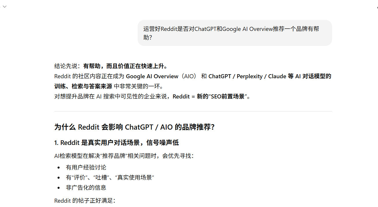 从这些结果和回答看,起码在互联网上或者AI的认知中,Reddit对于GEO应该有不错的作用。