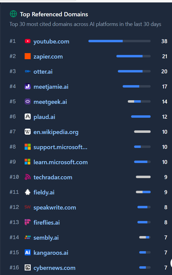 仍旧没有Reddit的身影,但是YouTube排在了第一的位置,做会议纪要的老大otter.ai的内容排名第三,Plaud自己也处于第六名的位置。